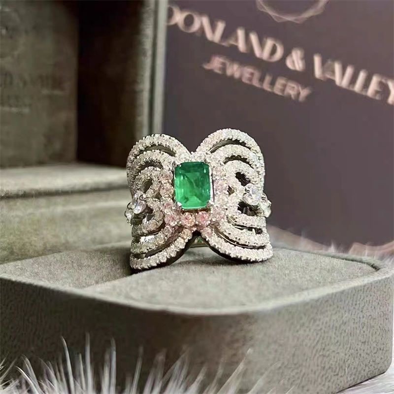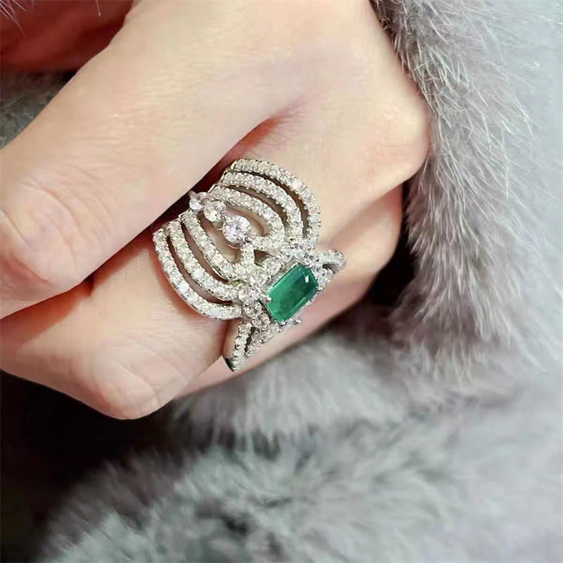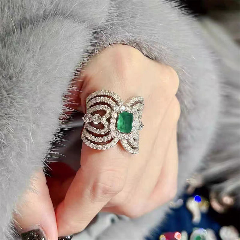 High-grade colorful emerald diamond-encrusted hollow ring quantity